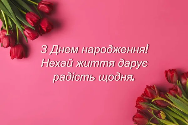 З днем народження. Хай у твоєму житті буде місце для простих радощів — тих, які не плануються, але запам’ятовуються. Для квітів без приводу, затишних вечорів, щирих розмов, приємних дрібниць і моментів, які хочеться згадувати ще довго.