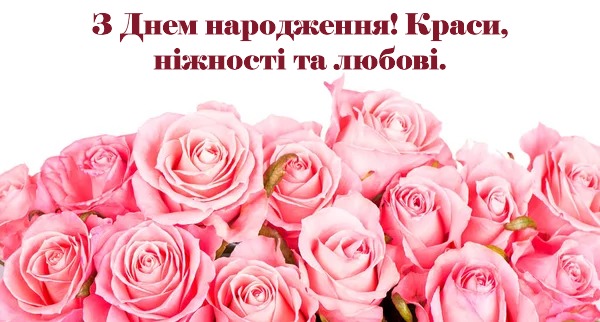 Вітаю з днем народження. Бажано, щоб життя не змушувало тебе ставати жорсткішою, ніж ти є. І щоб твоя доброта завжди знаходила відповідь, а жіночність, чарівність і світло в тобі не тьмяніли від чужої грубості.